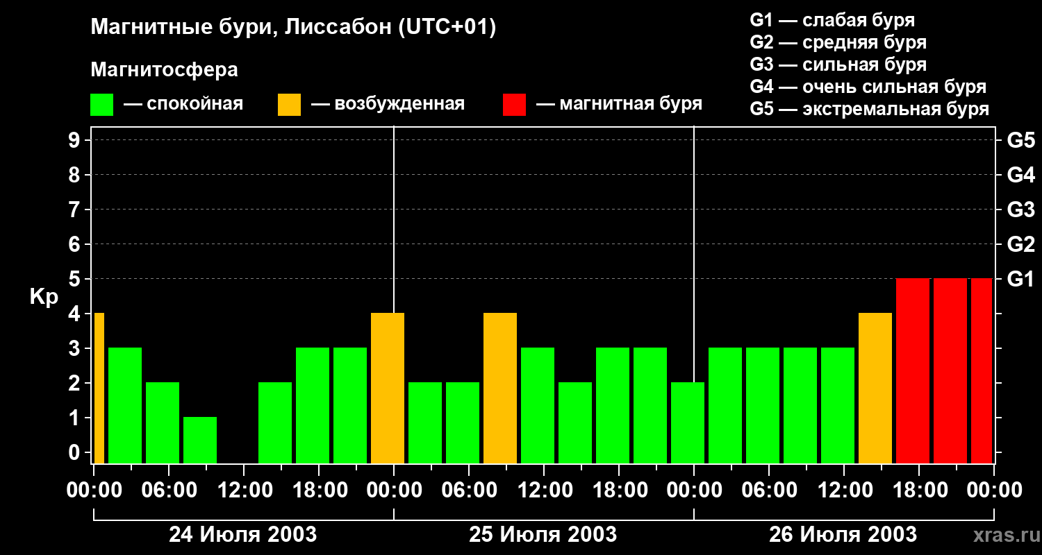 Магнитные бури в Лиссабоне — 26 июля 2003 года