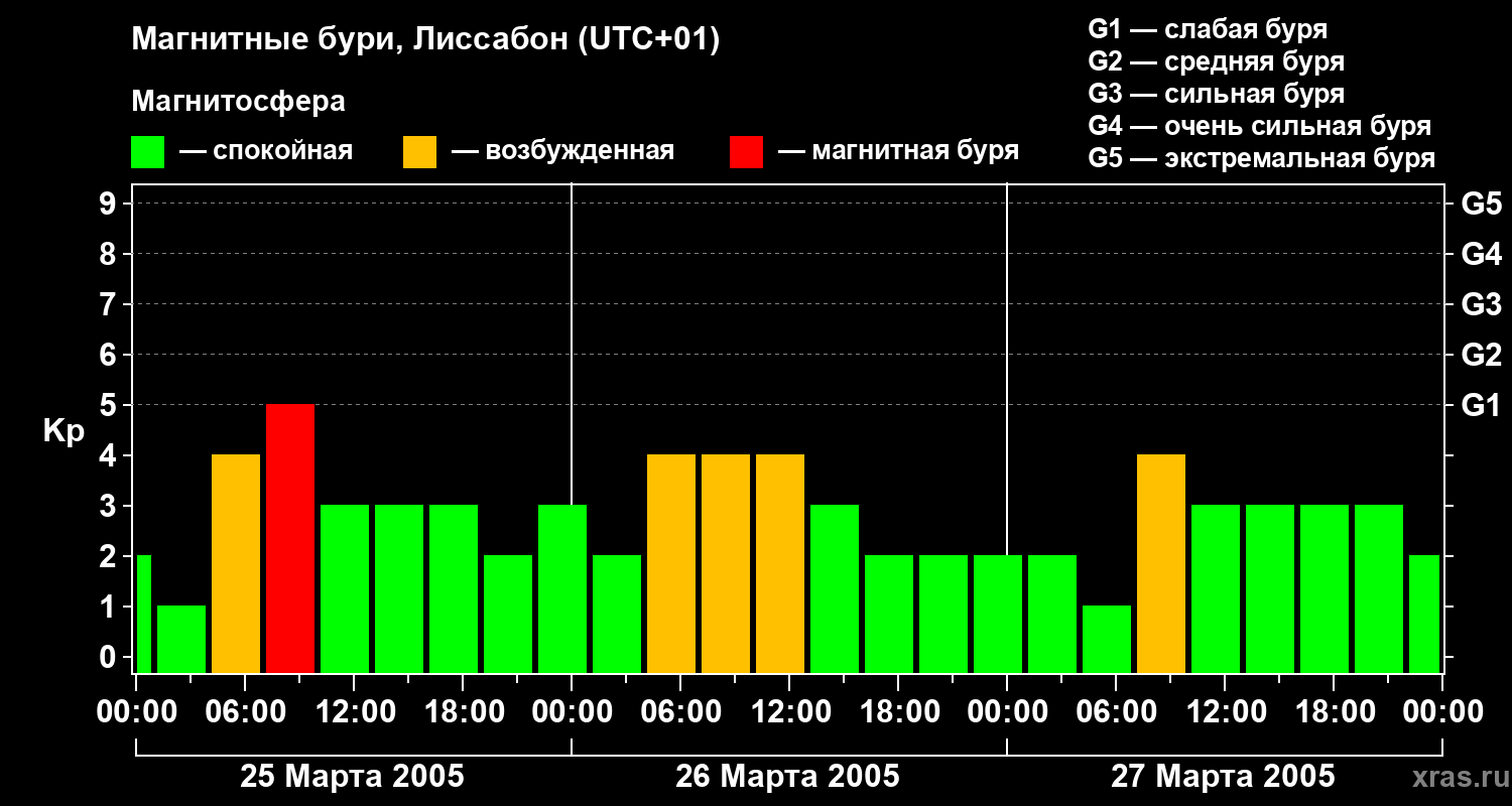 Магнитные бури в Лиссабоне — 27 марта 2005 года