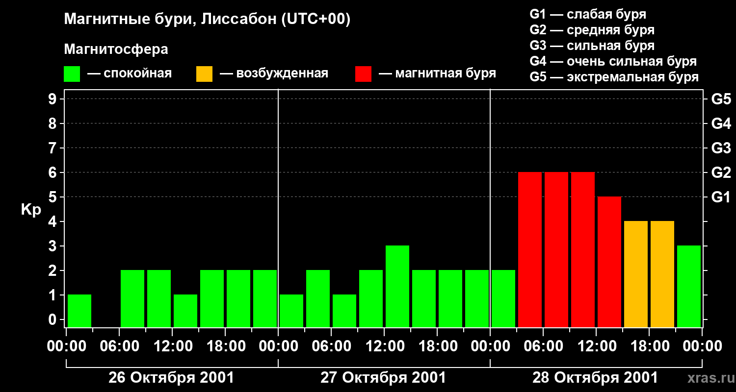 Магнитные бури в Лиссабоне — 28 октября 2001 года