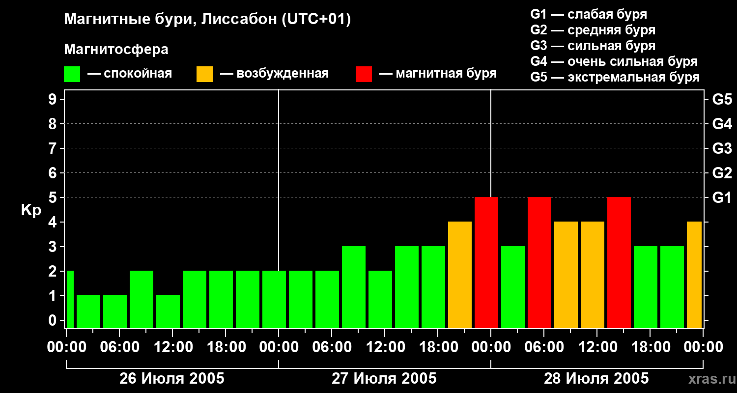 Магнитные бури в Лиссабоне — 28 июля 2005 года