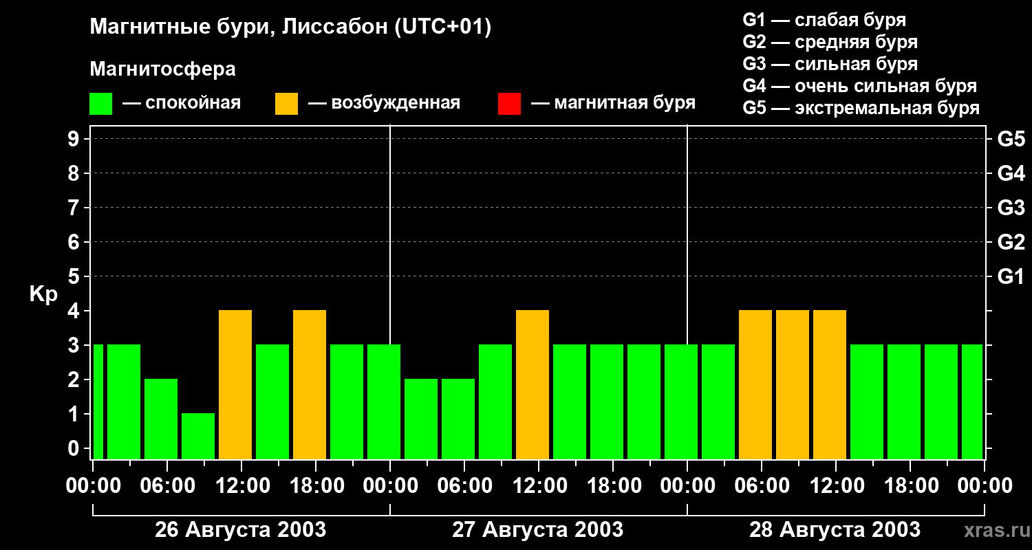 Магнитные бури в Лиссабоне — 28 августа 2003 года