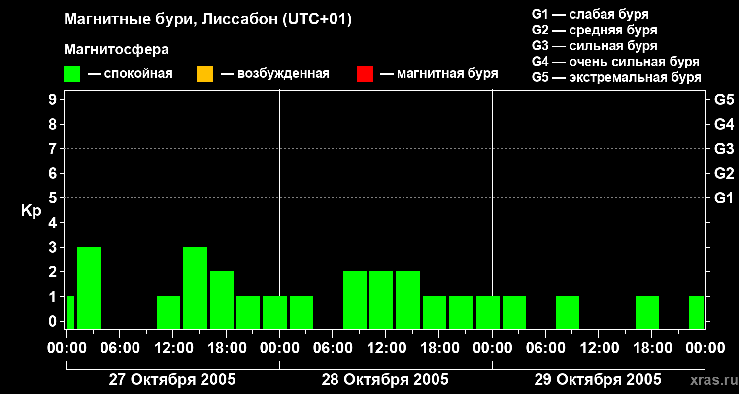 Магнитные бури в Лиссабоне — 29 октября 2005 года