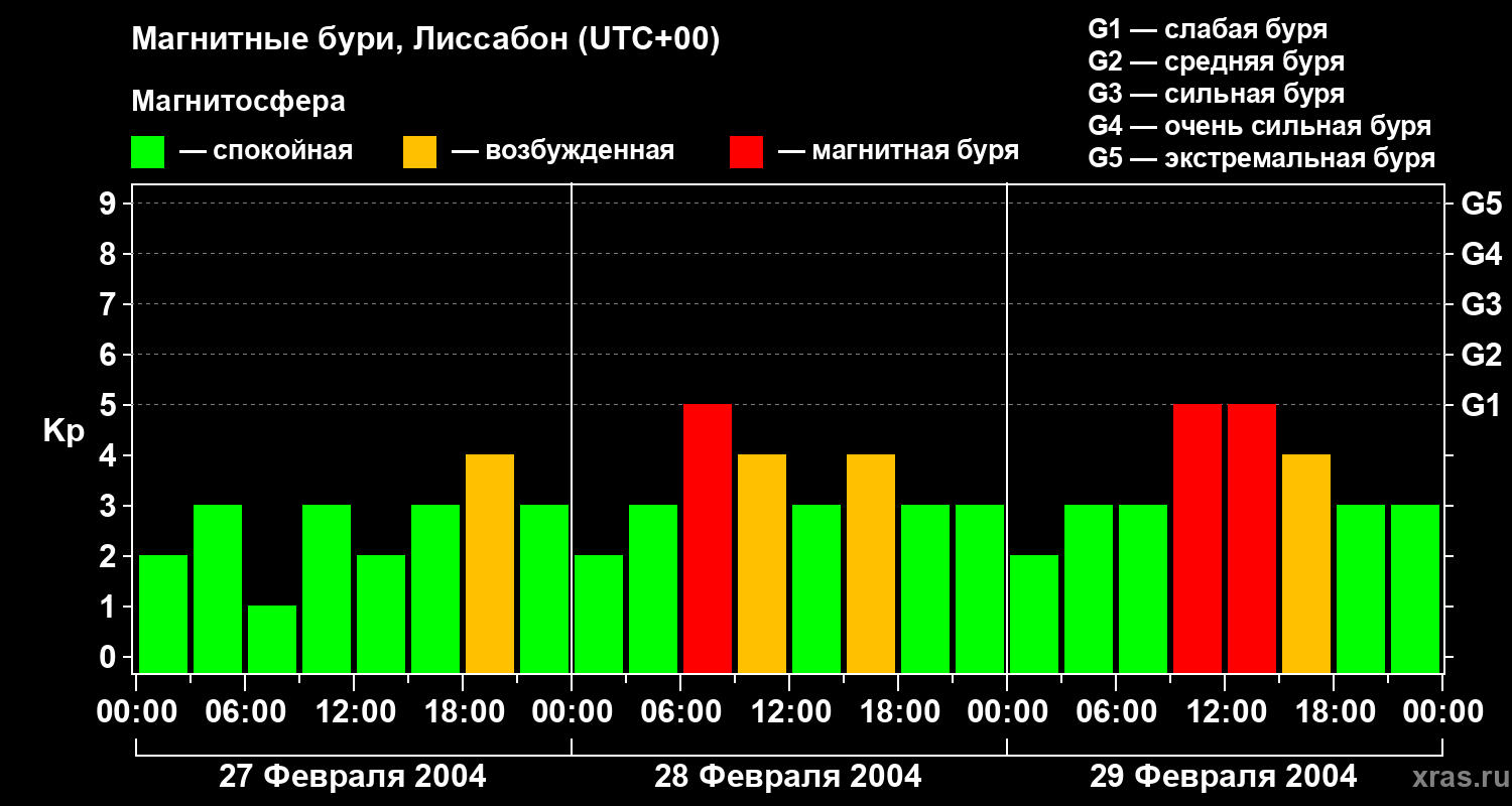Магнитные бури в Лиссабоне — 29 февраля 2004 года