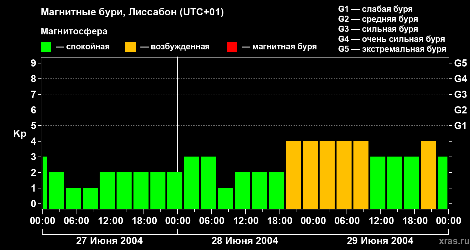 Магнитные бури в Лиссабоне — 29 июня 2004 года