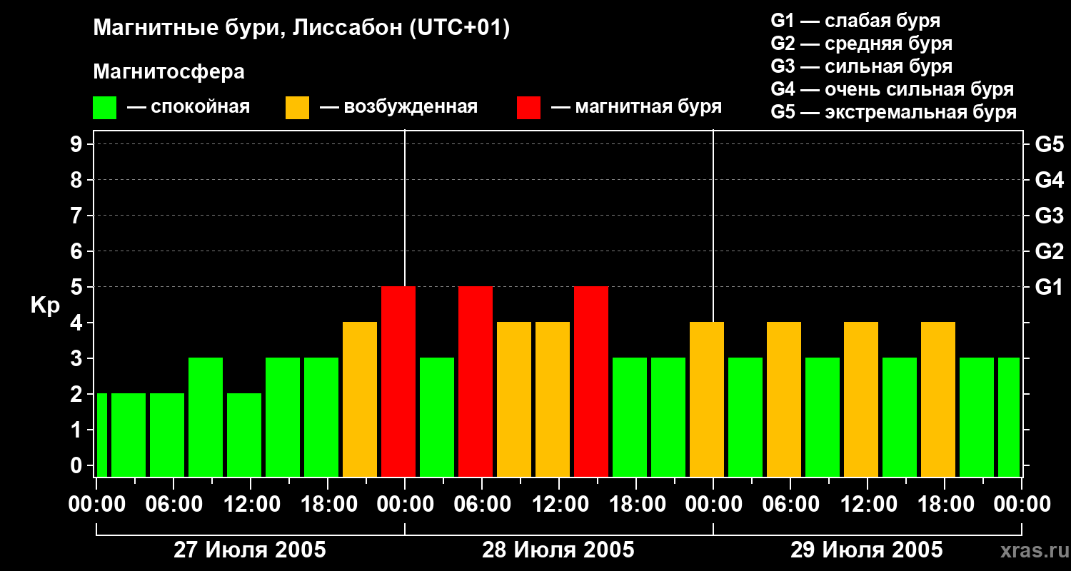 Магнитные бури в Лиссабоне — 29 июля 2005 года