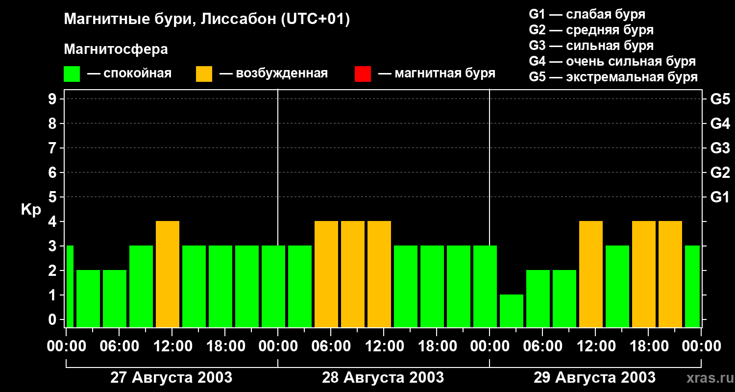 Магнитные бури в Лиссабоне — 29 августа 2003 года