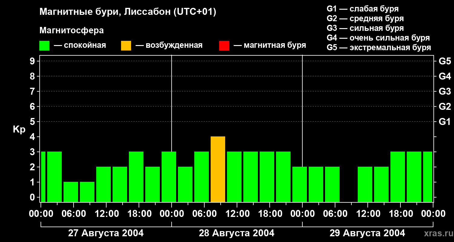 Магнитные бури в Лиссабоне — 29 августа 2004 года