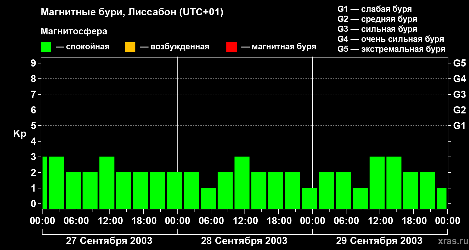 Магнитные бури в Лиссабоне — 29 сентября 2003 года