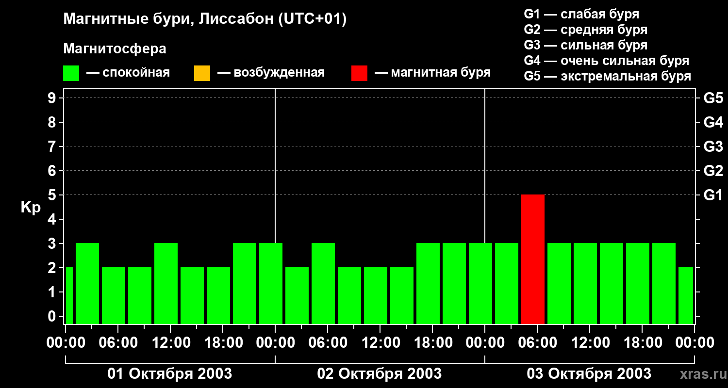 Магнитные бури в Лиссабоне — 3 октября 2003 года