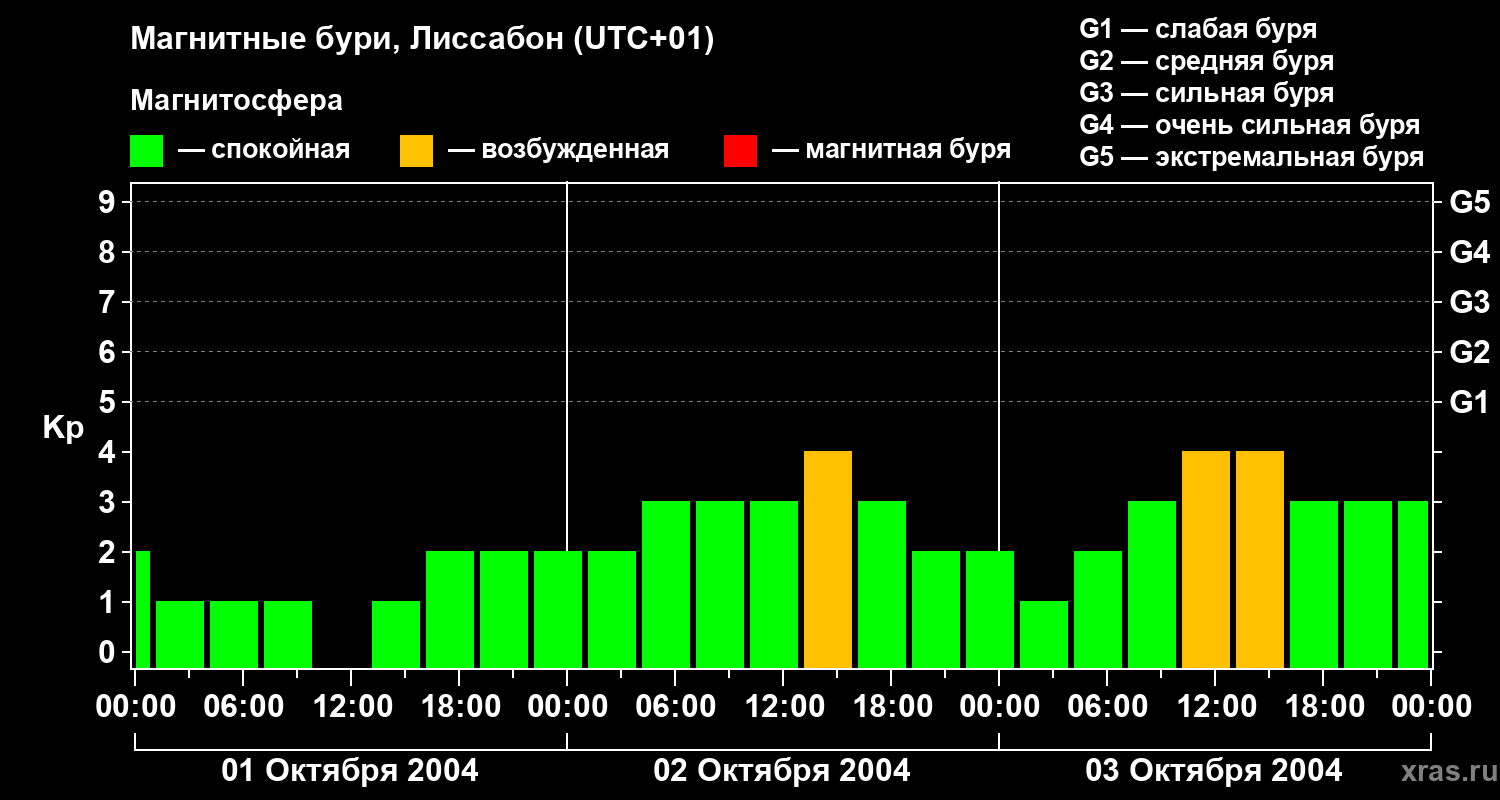 Магнитные бури в Лиссабоне 3 октября 2004 года
