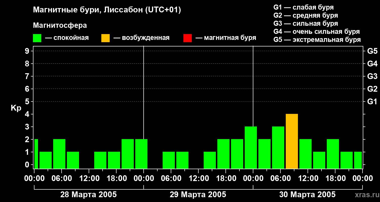 Магнитные бури в Лиссабоне — 30 марта 2005 года