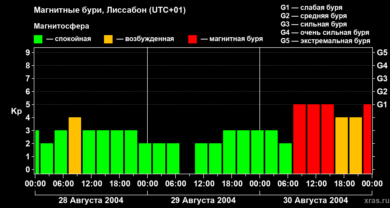 Магнитные бури в Лиссабоне — 30 августа 2004 года