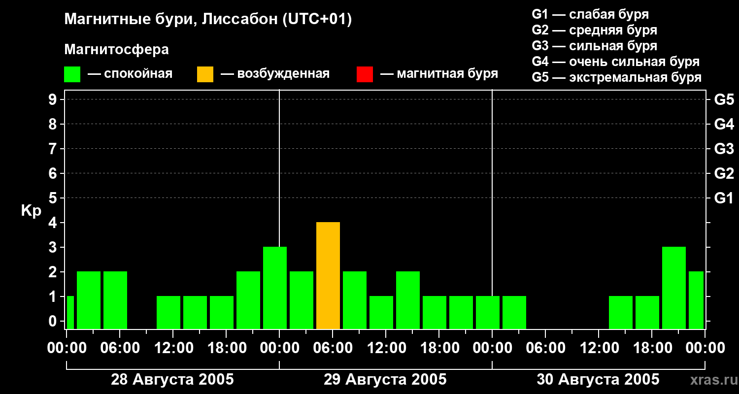 Магнитные бури в Лиссабоне — 30 августа 2005 года