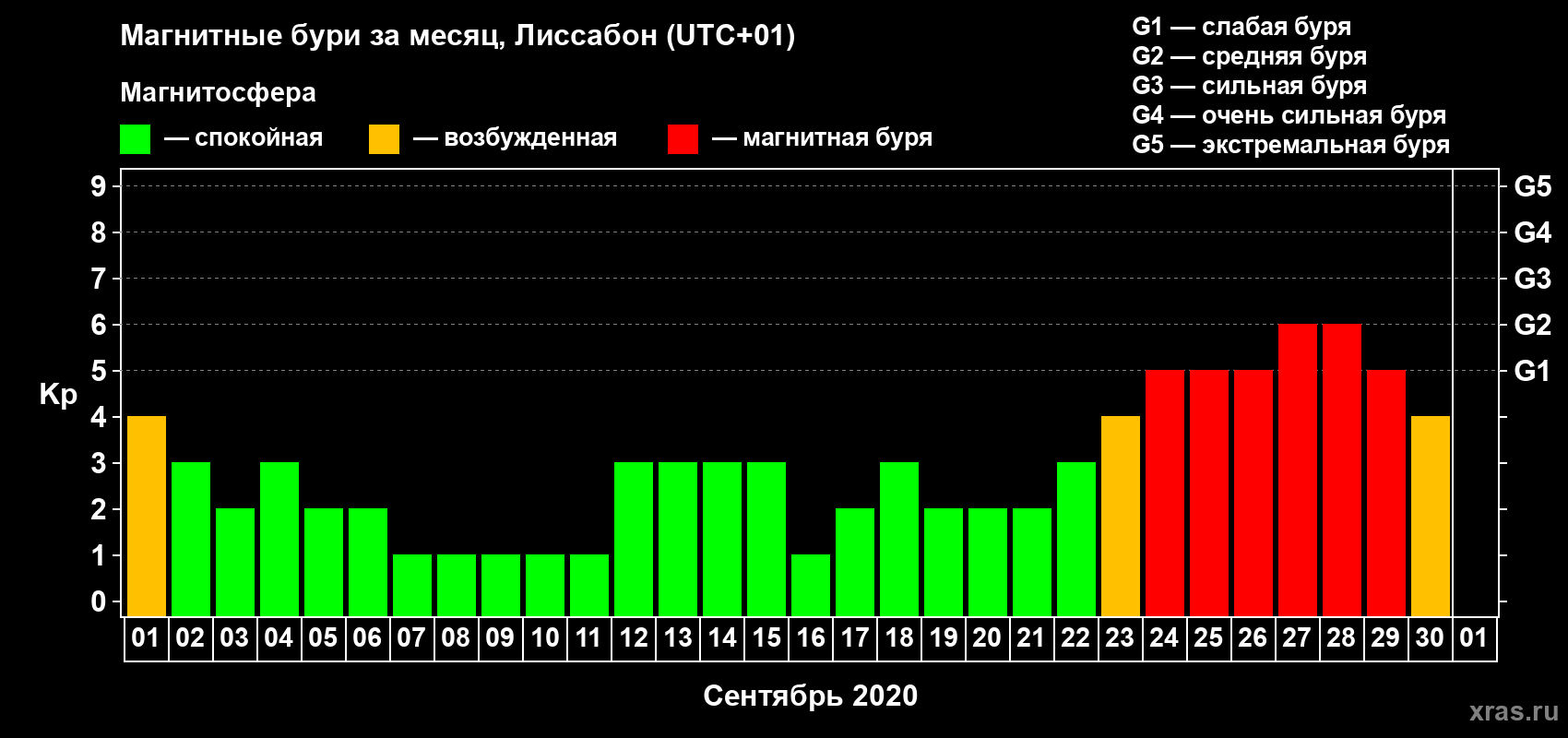 Магнитные бури в Лиссабоне — 30 сентября 2020 года