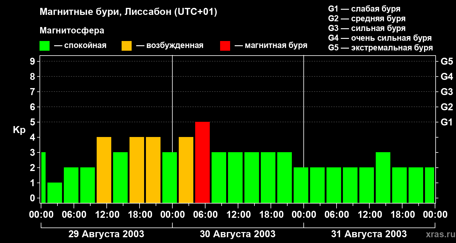Магнитные бури в Лиссабоне — 31 августа 2003 года