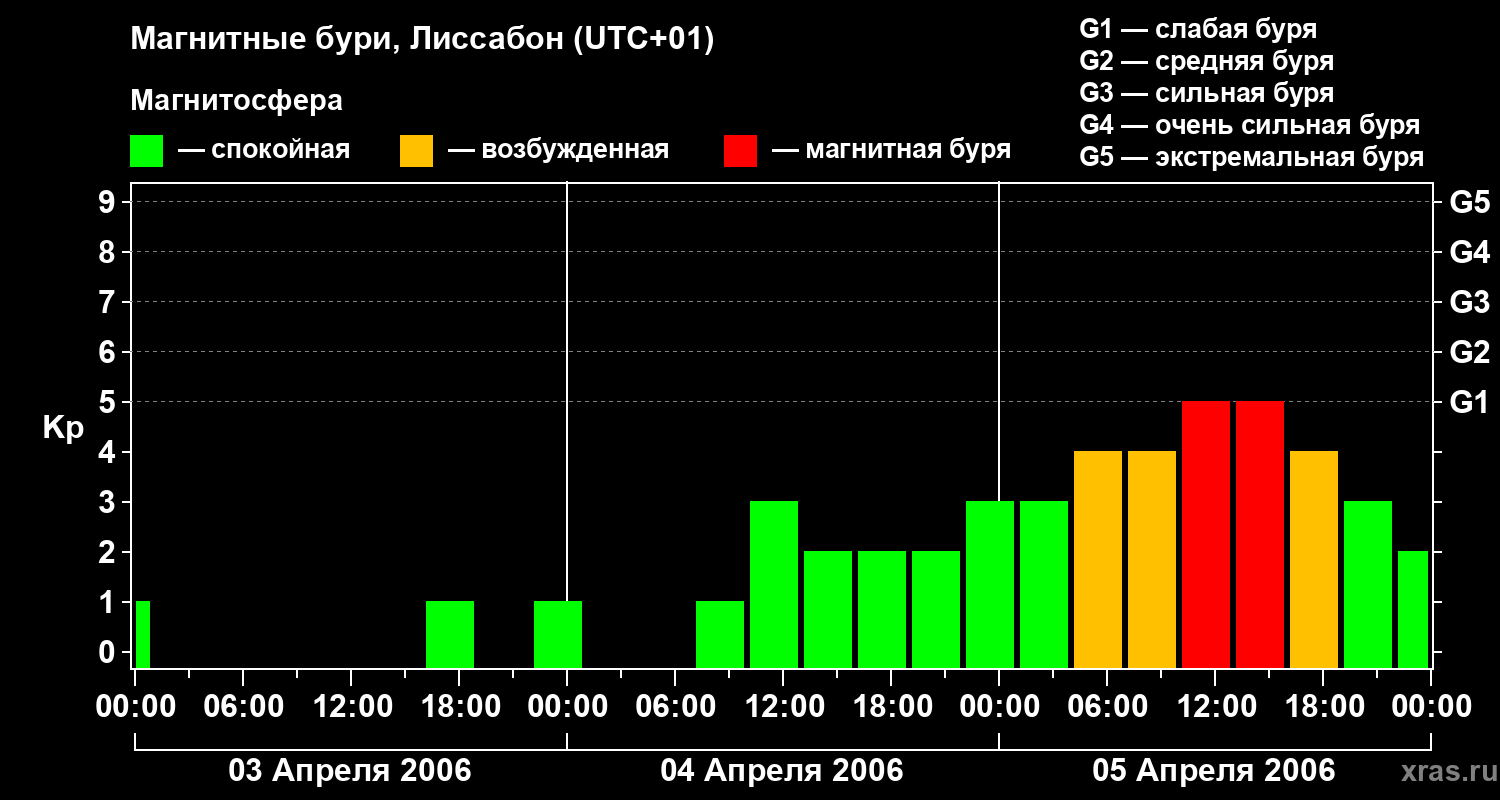Магнитные бури в Лиссабоне — 5 апреля 2006 года