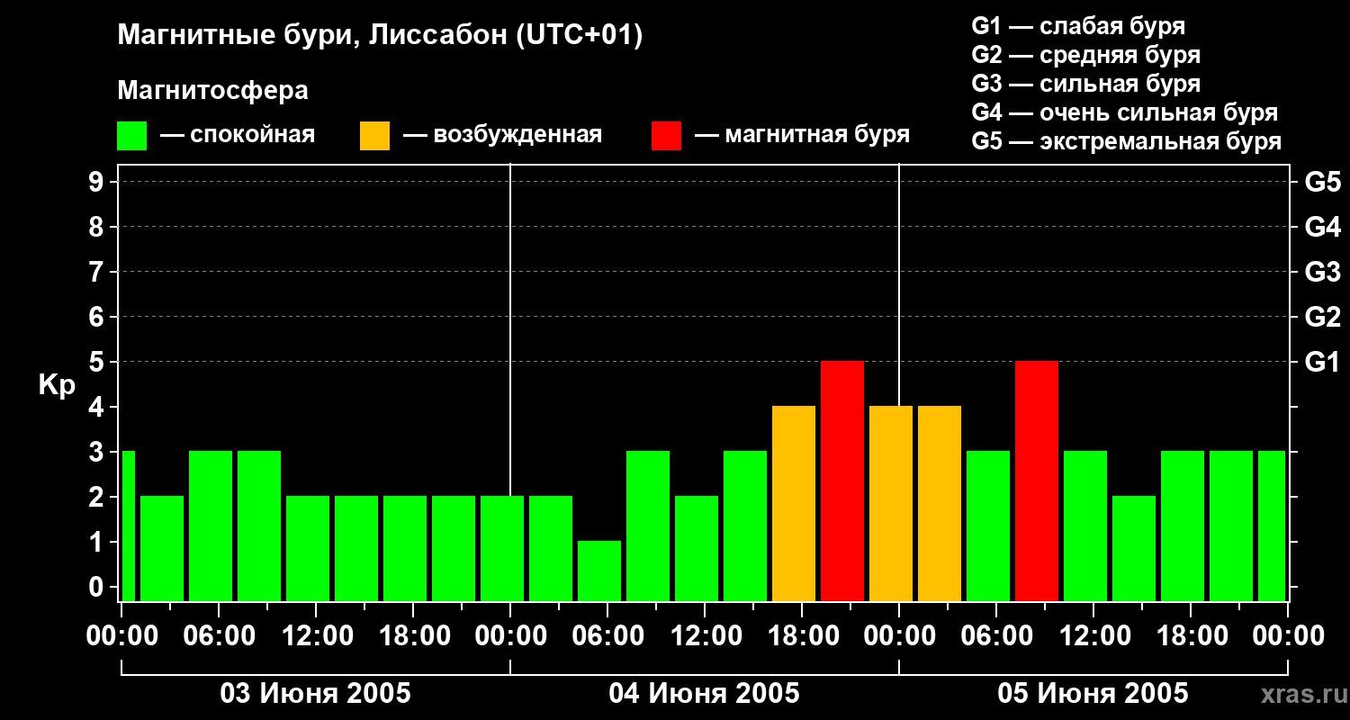 Магнитные бури в Лиссабоне 5 июня 2005 года