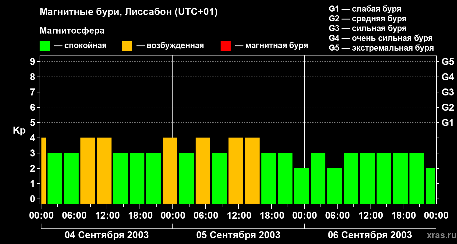 Магнитные бури в Лиссабоне — 6 сентября 2003 года