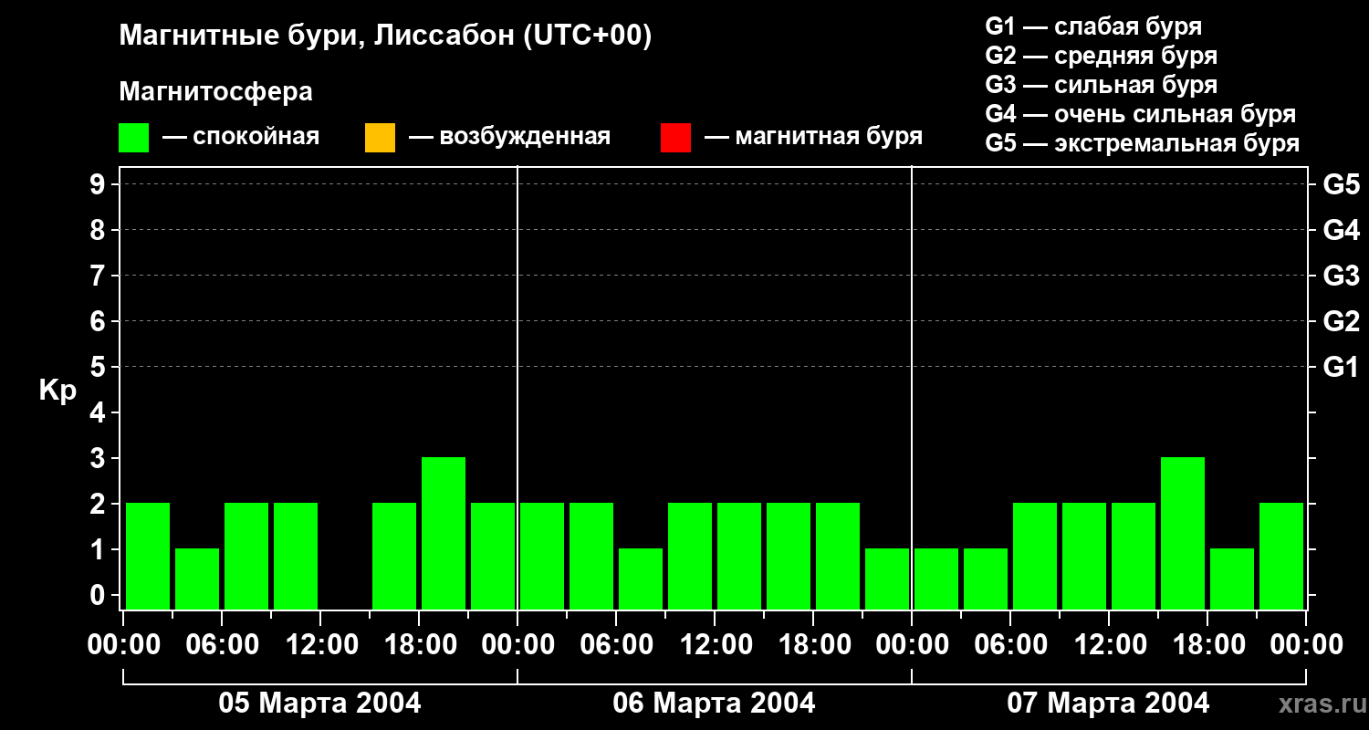 Магнитные бури в Лиссабоне — 7 марта 2004 года