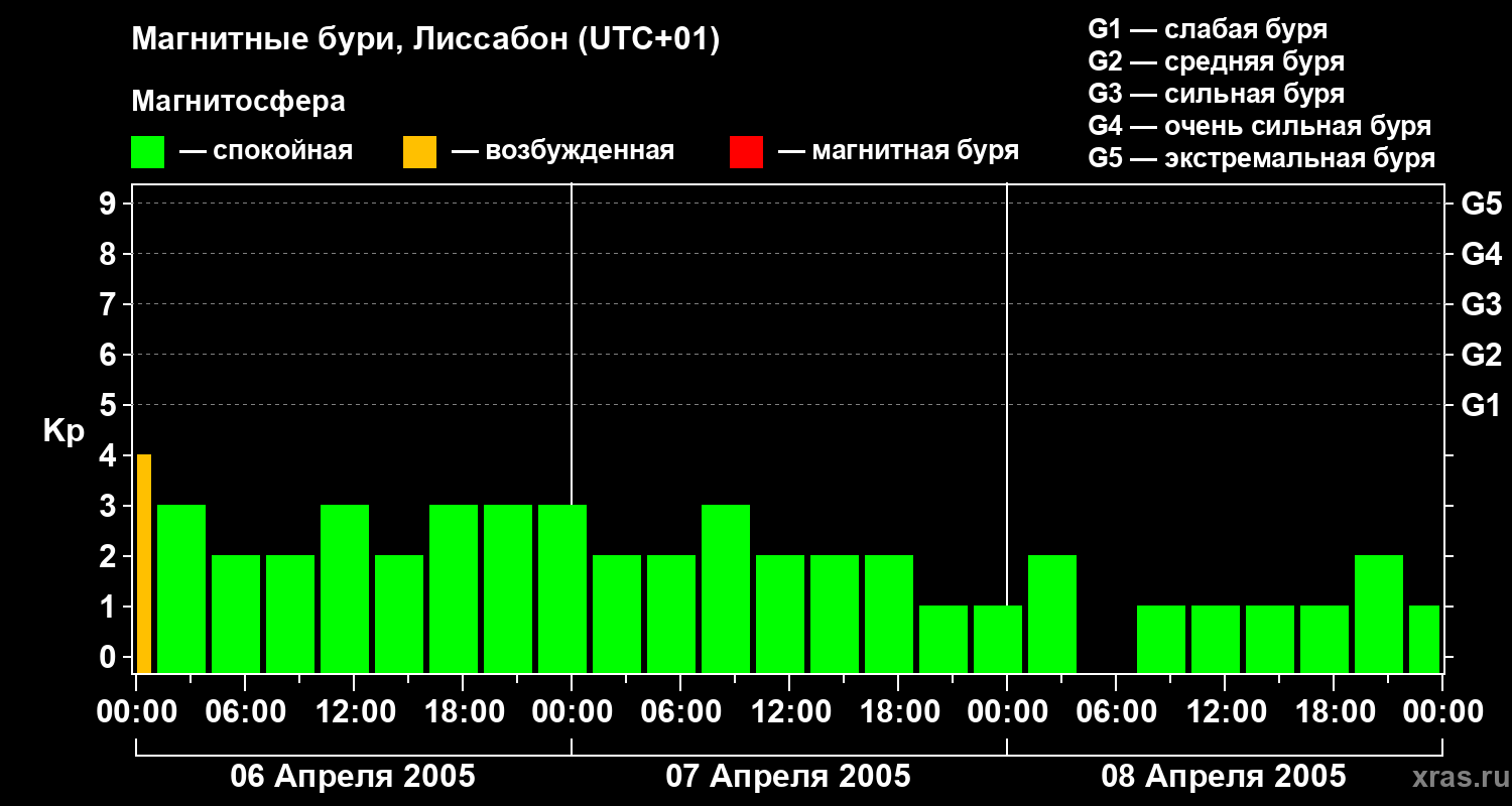 Магнитные бури в Лиссабоне — 8 апреля 2005 года