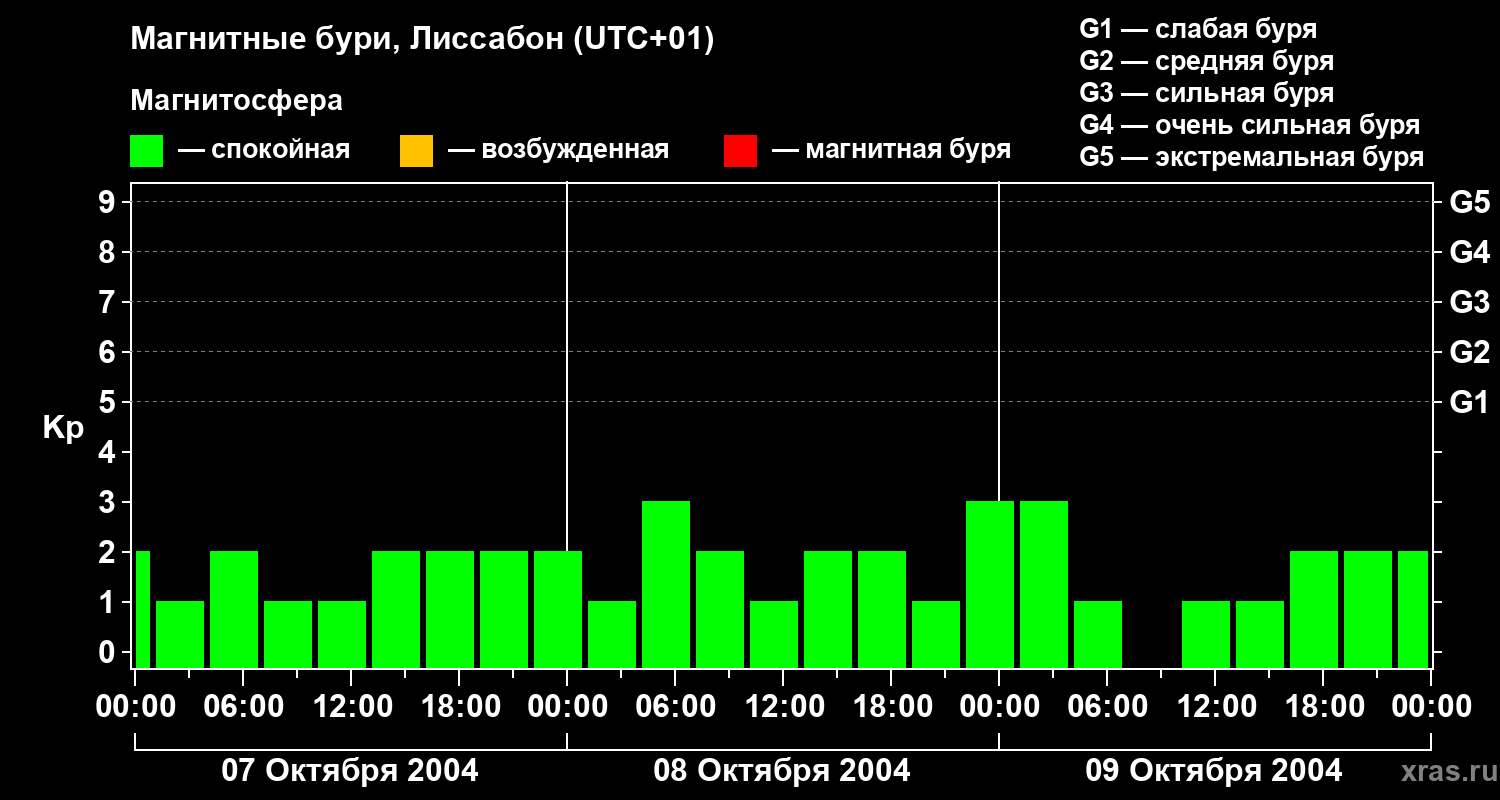 Магнитные бури в Лиссабоне — 9 октября 2004 года