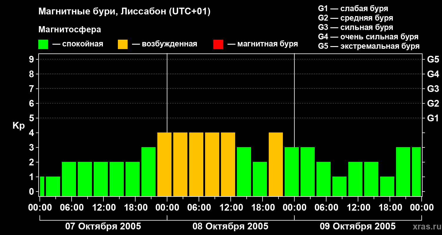 Магнитные бури в Лиссабоне 9 октября 2005 года