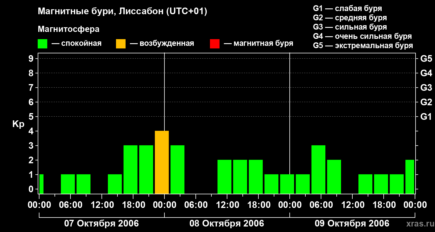Магнитные бури в Лиссабоне — 9 октября 2006 года