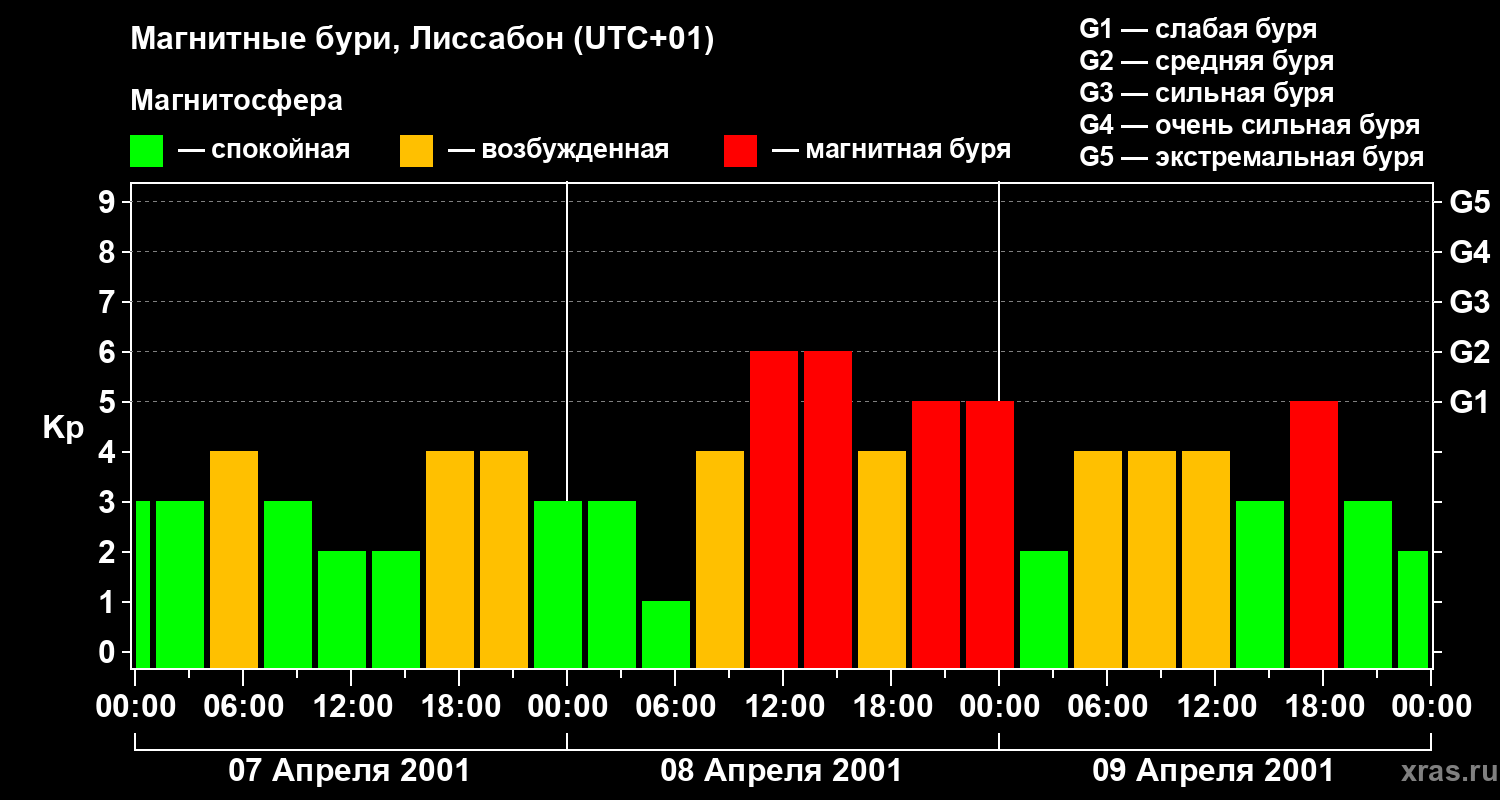 Магнитные бури в Лиссабоне 9 апреля 2001 года
