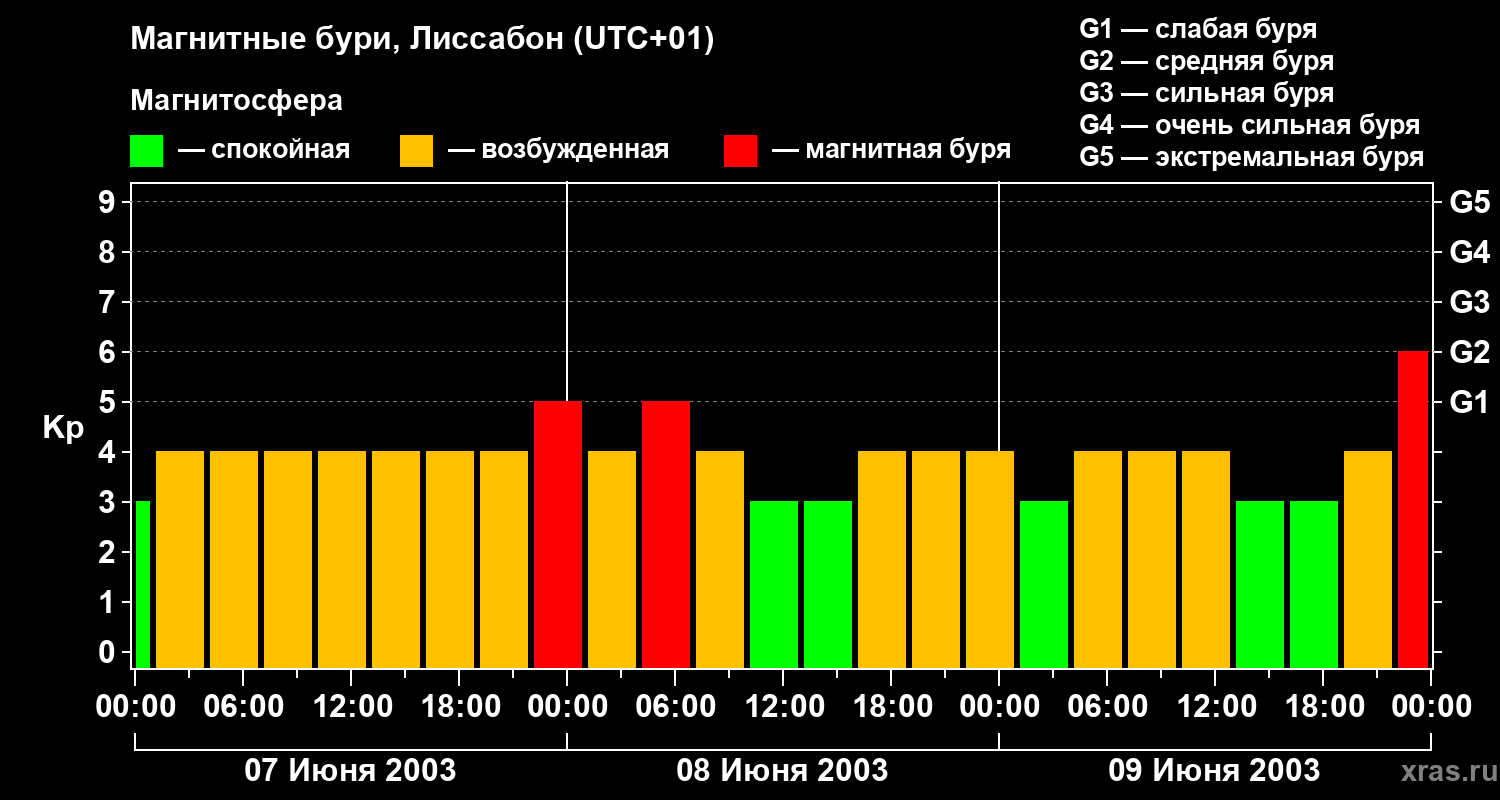 Магнитные бури в Лиссабоне — 9 июня 2003 года