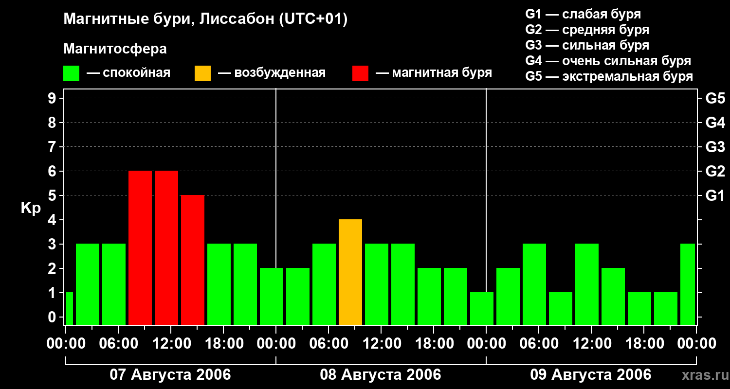 Магнитные бури в Лиссабоне — 9 августа 2006 года