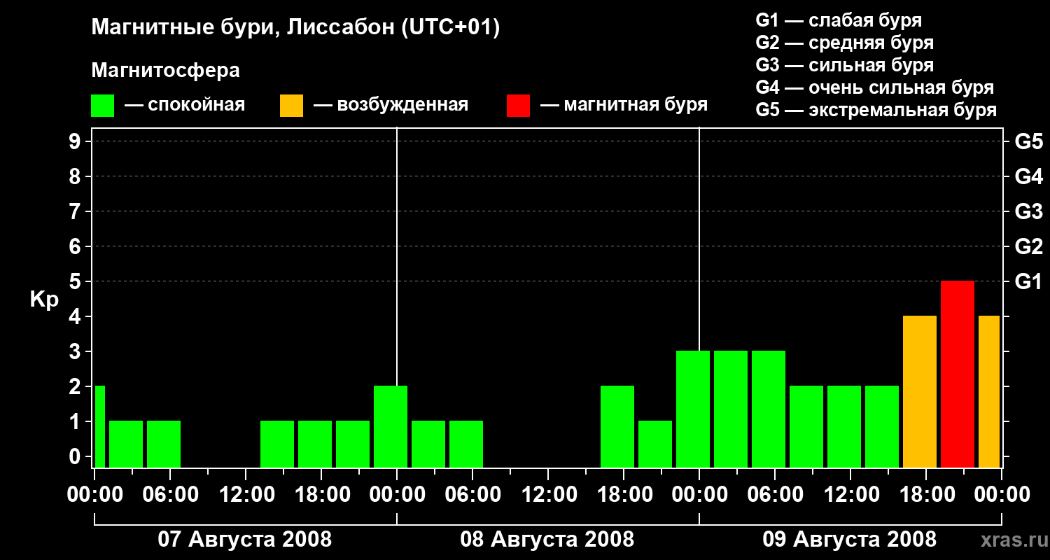 Магнитные бури в Лиссабоне — 9 августа 2008 года