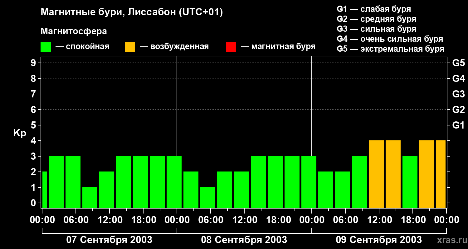 Магнитные бури в Лиссабоне — 9 сентября 2003 года