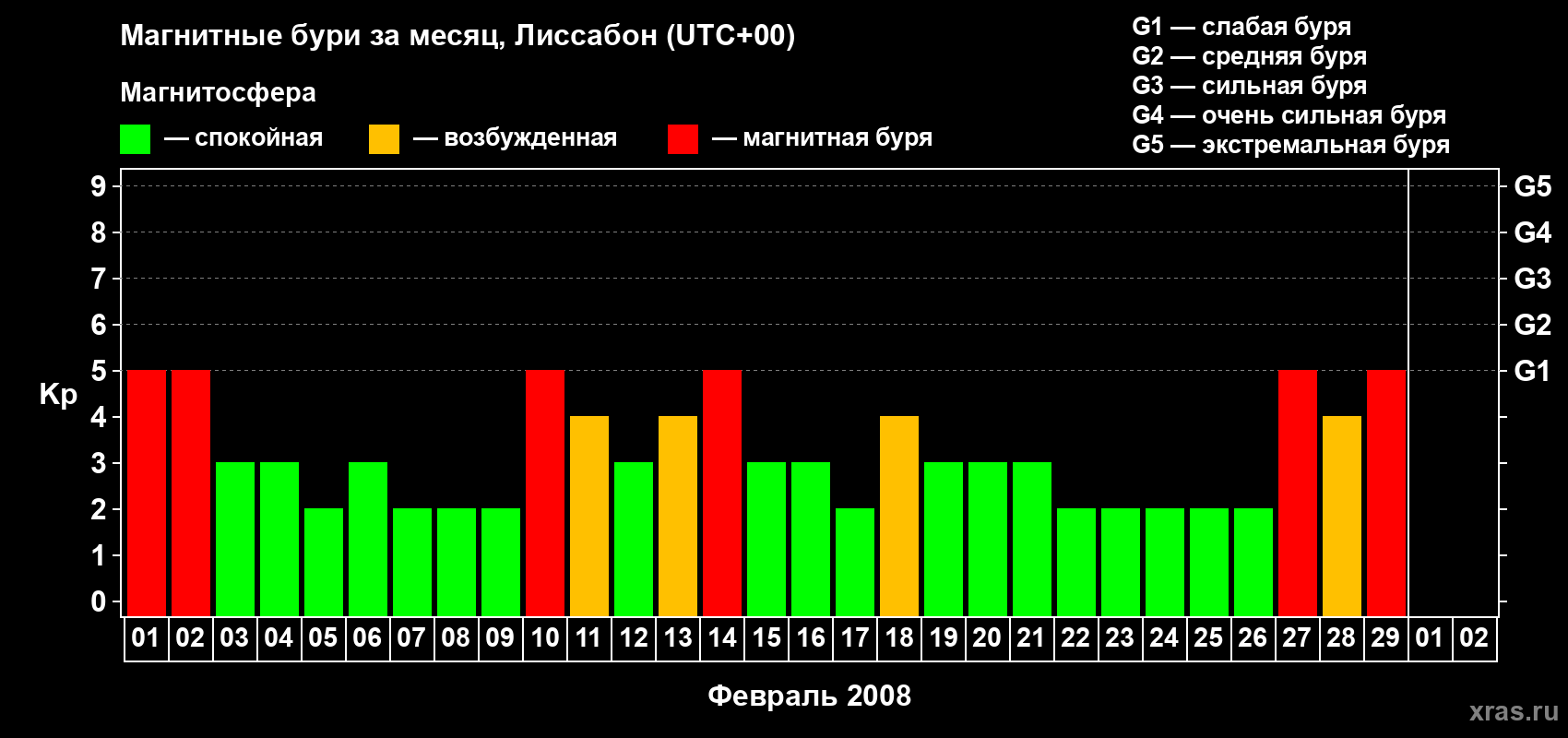 Список магнитных бурь в феврале 2008 года