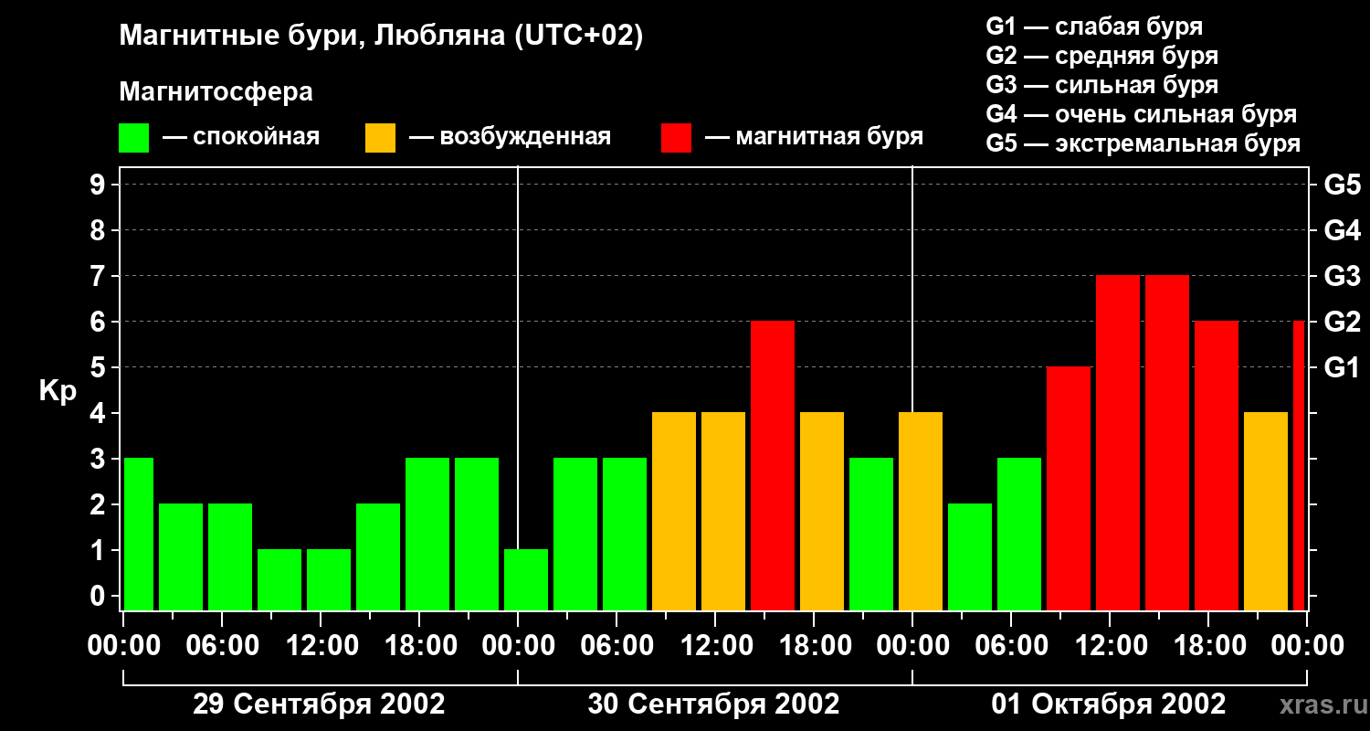 Магнитные бури в Любляне — 1 октября 2002 года