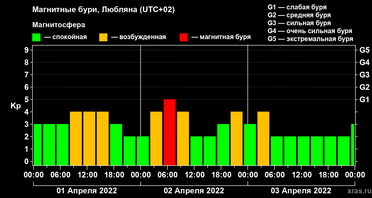 Магнитные бури в Любляне — 3 апреля 2022 года