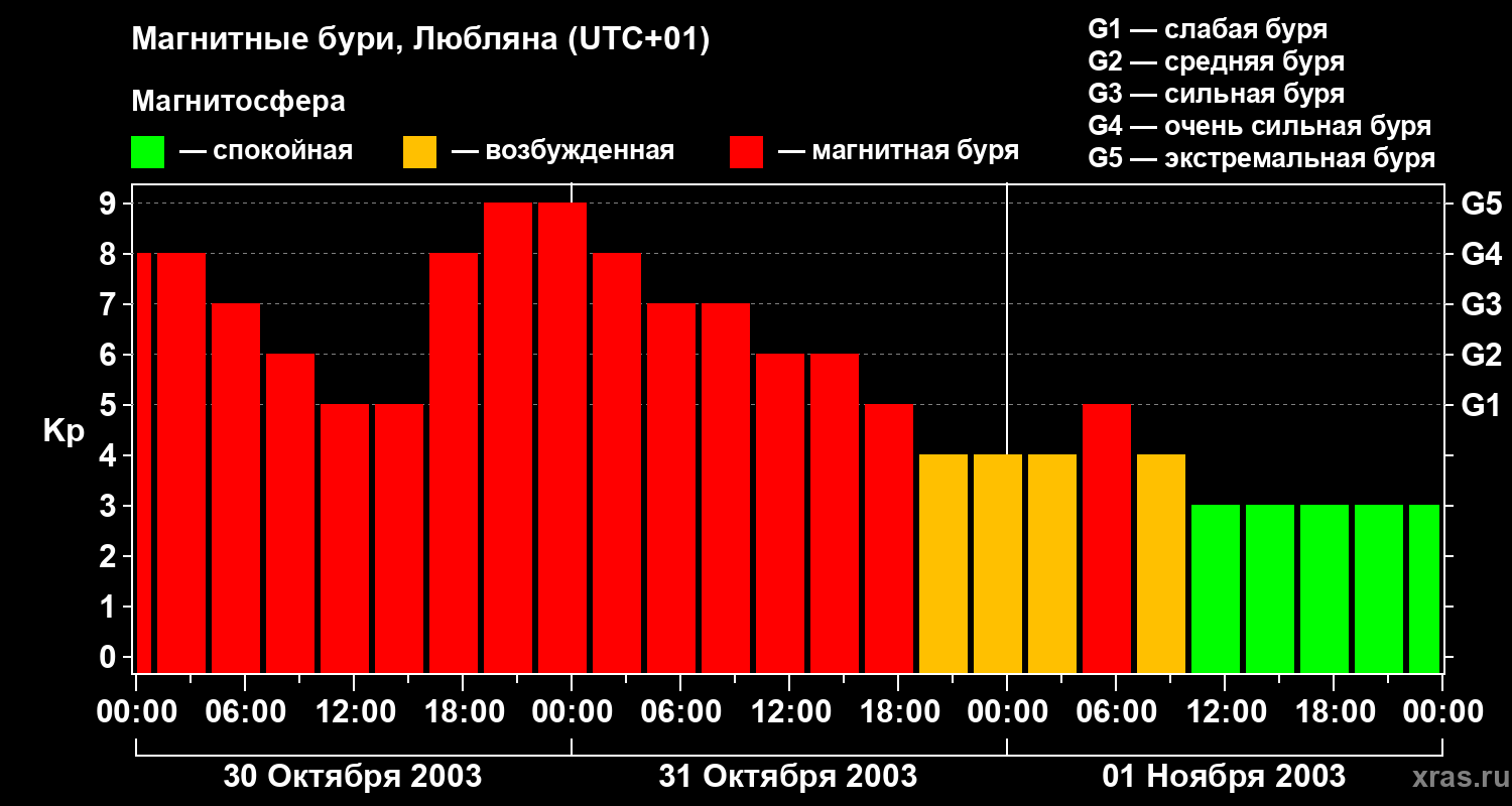 Магнитные бури в Любляне — 1 ноября 2003 года