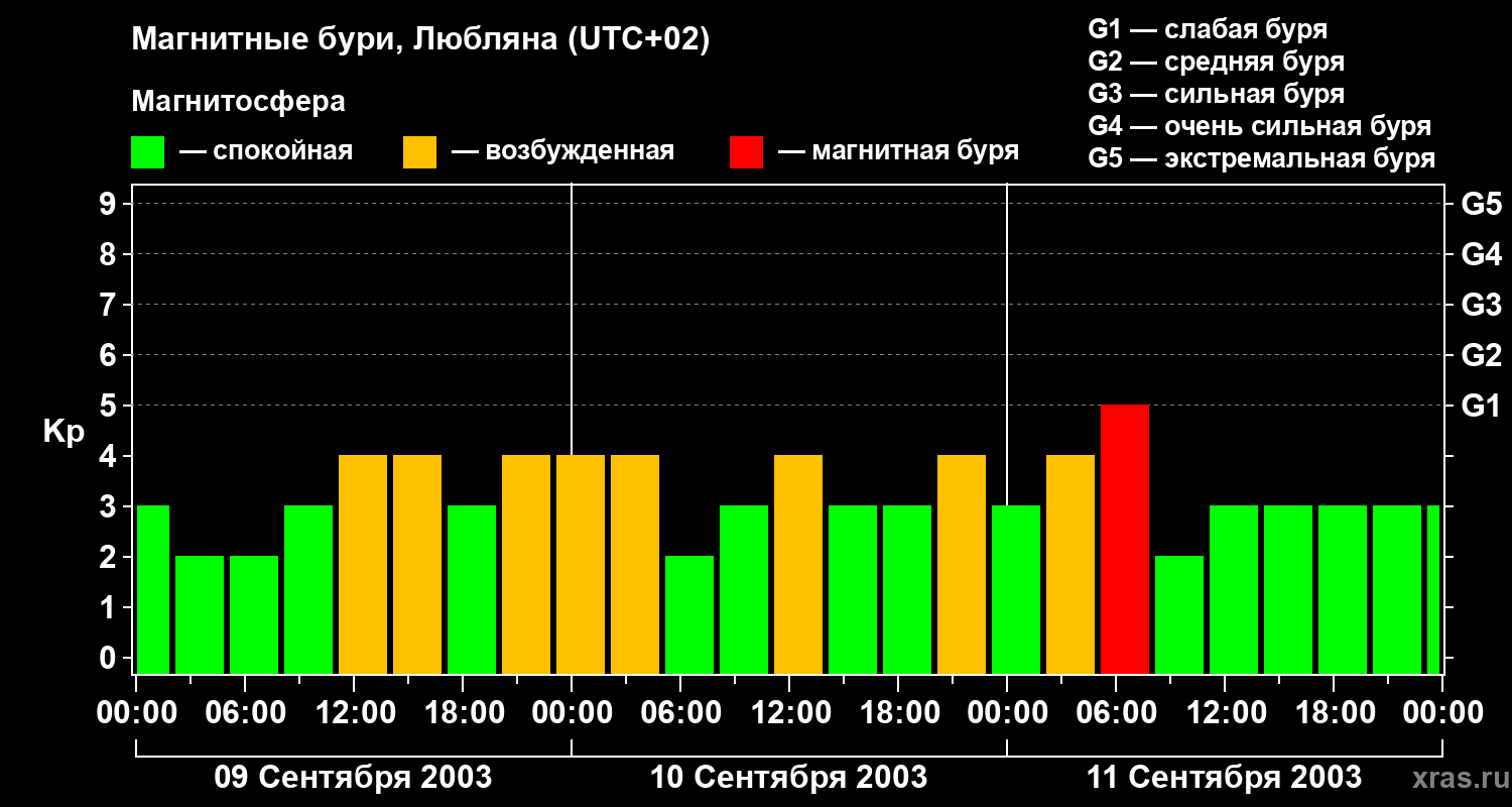Магнитные бури в Любляне — 11 сентября 2003 года