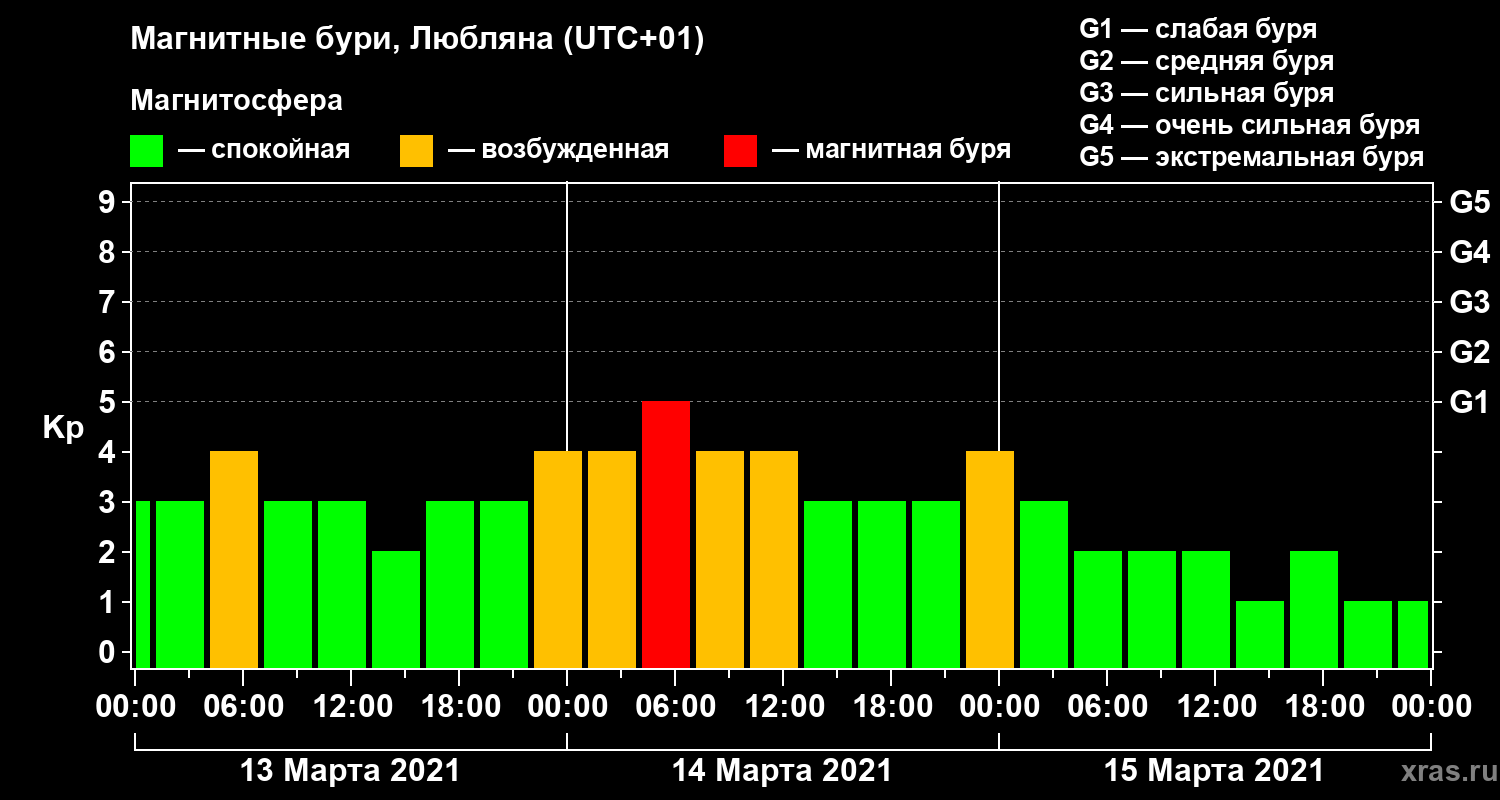 Магнитные бури в Любляне — 15 марта 2021 года