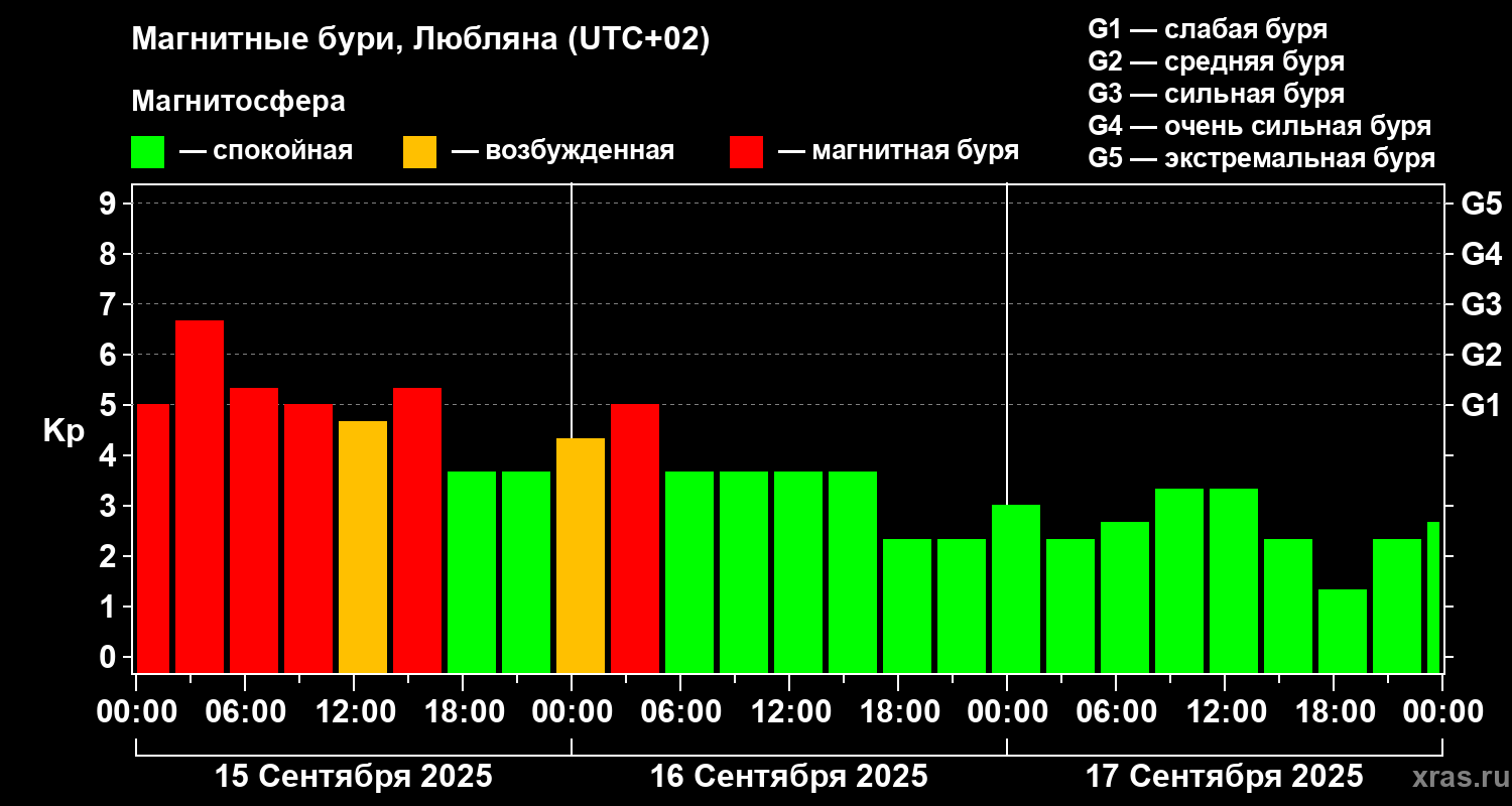 Магнитные бури в Любляне — 17 сентября 2025 года