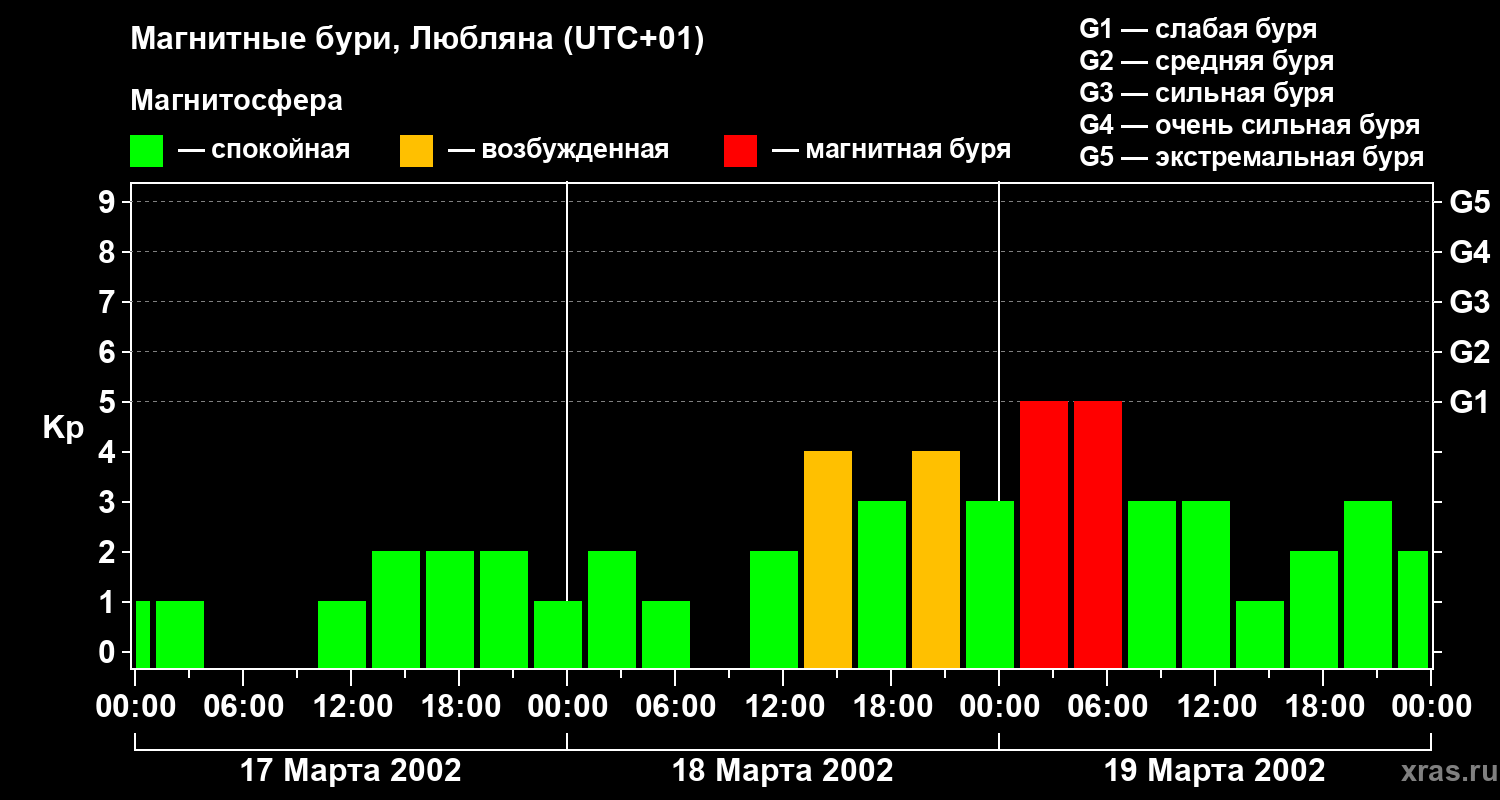 Магнитные бури в Любляне — 19 марта 2002 года