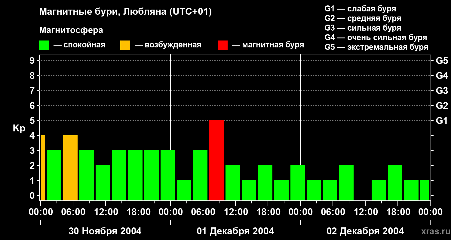 Магнитные бури в Любляне — 2 декабря 2004 года