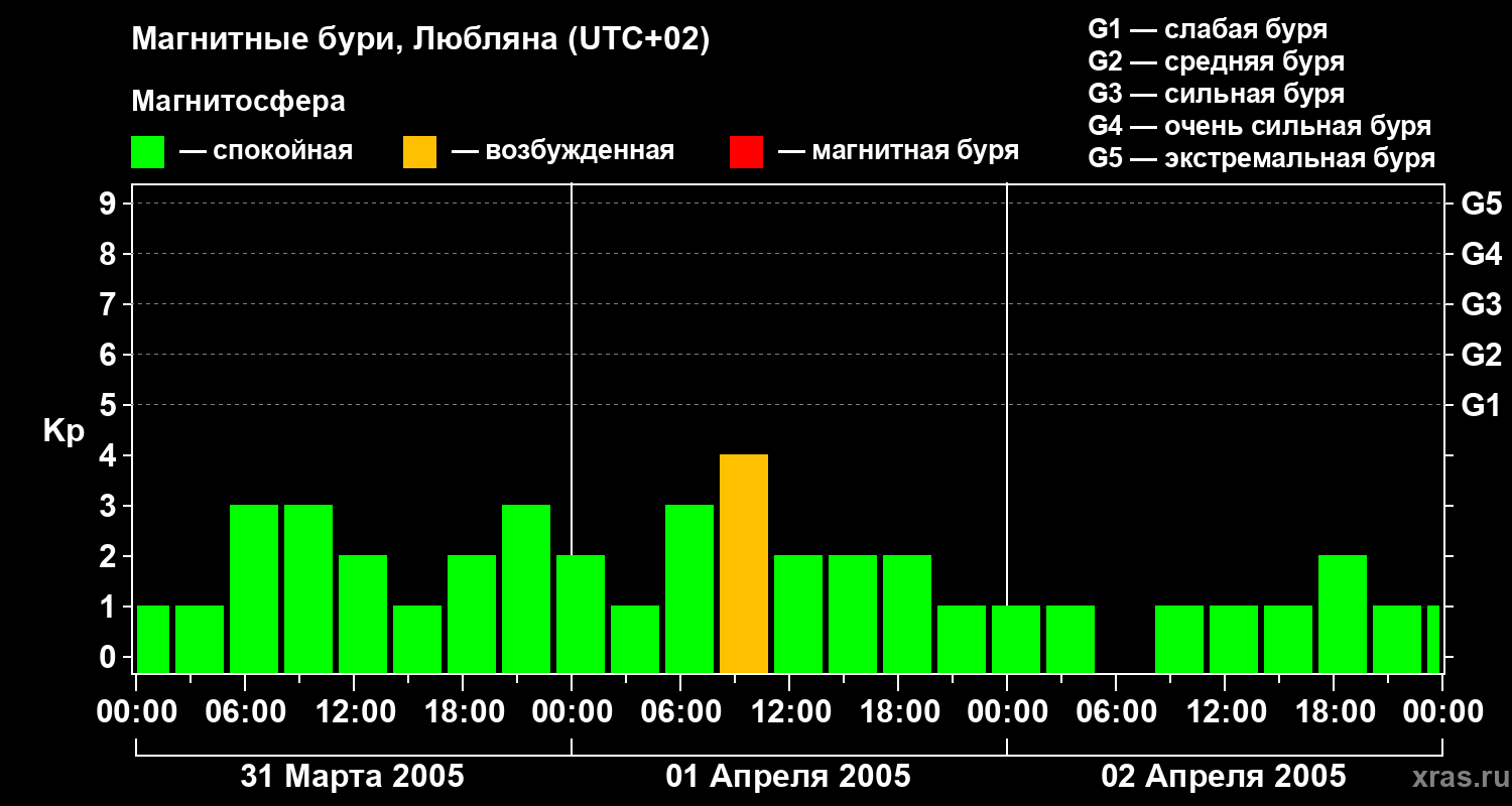 Магнитные бури в Любляне — 2 апреля 2005 года