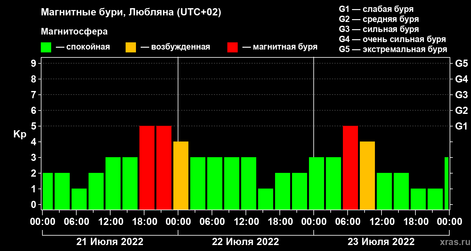 Магнитные бури в Любляне 23 июля 2022 года