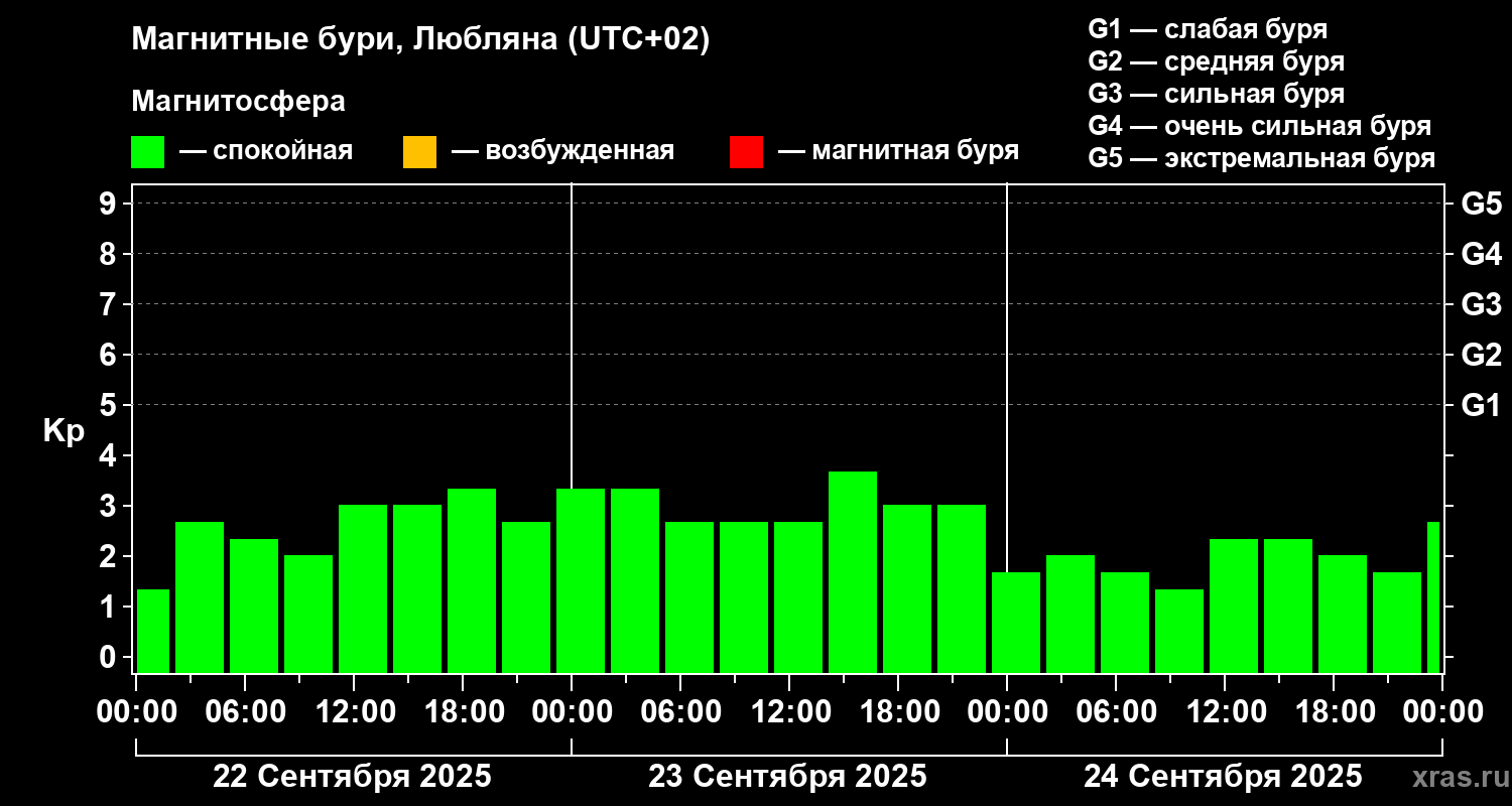 Магнитные бури в Любляне — 24 сентября 2025 года