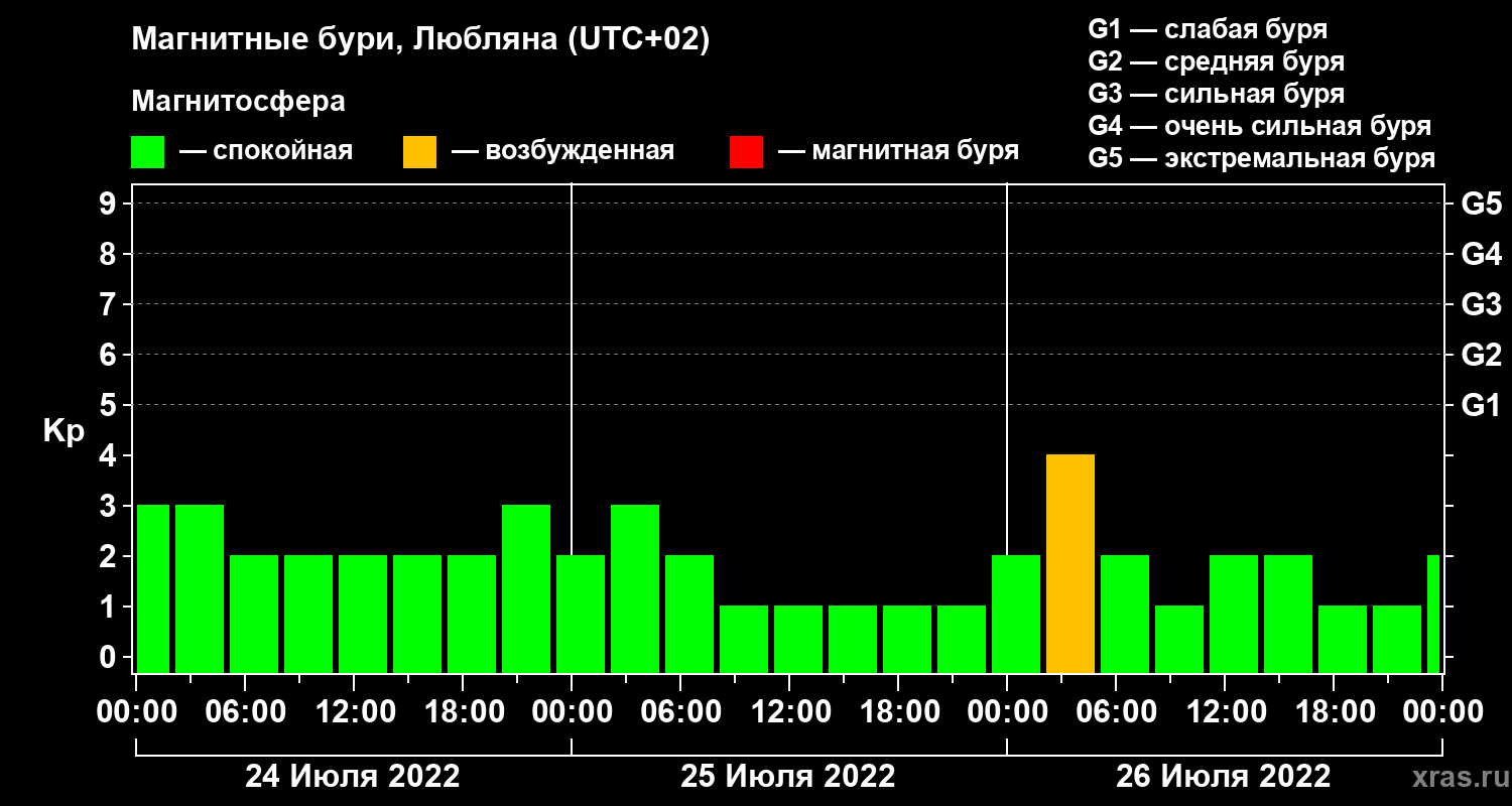 Магнитные бури в Любляне — 26 июля 2022 года