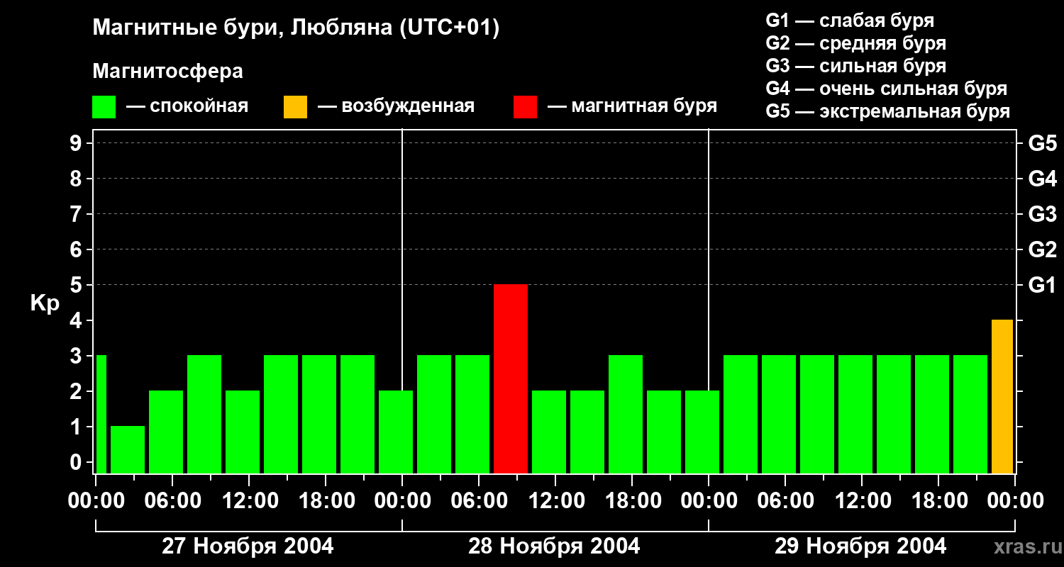 Магнитные бури в Любляне — 29 ноября 2004 года