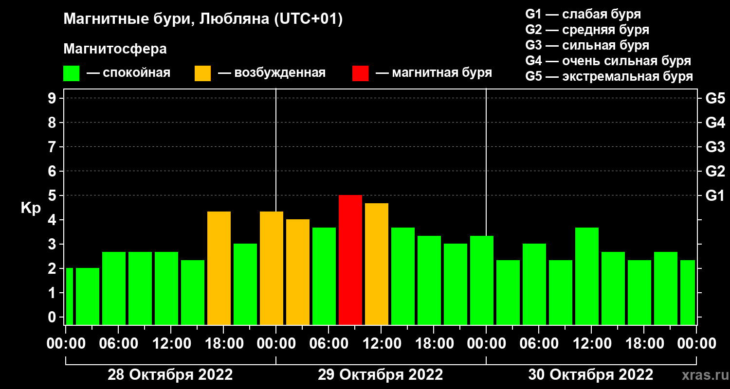 Магнитные бури в Любляне — 30 октября 2022 года