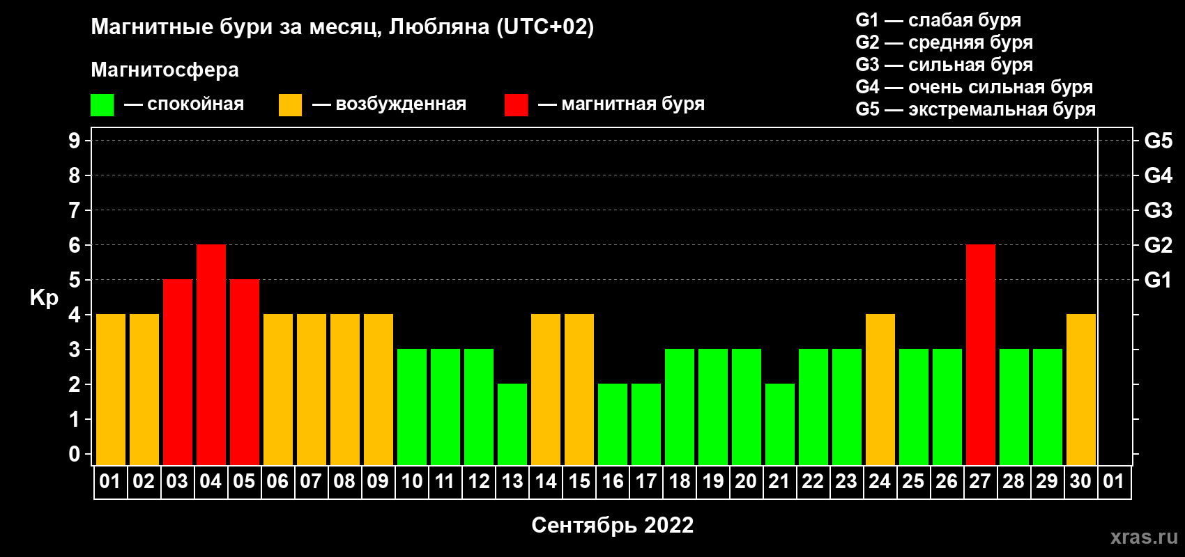 Магнитные бури в Любляне 30 сентября 2022 года
