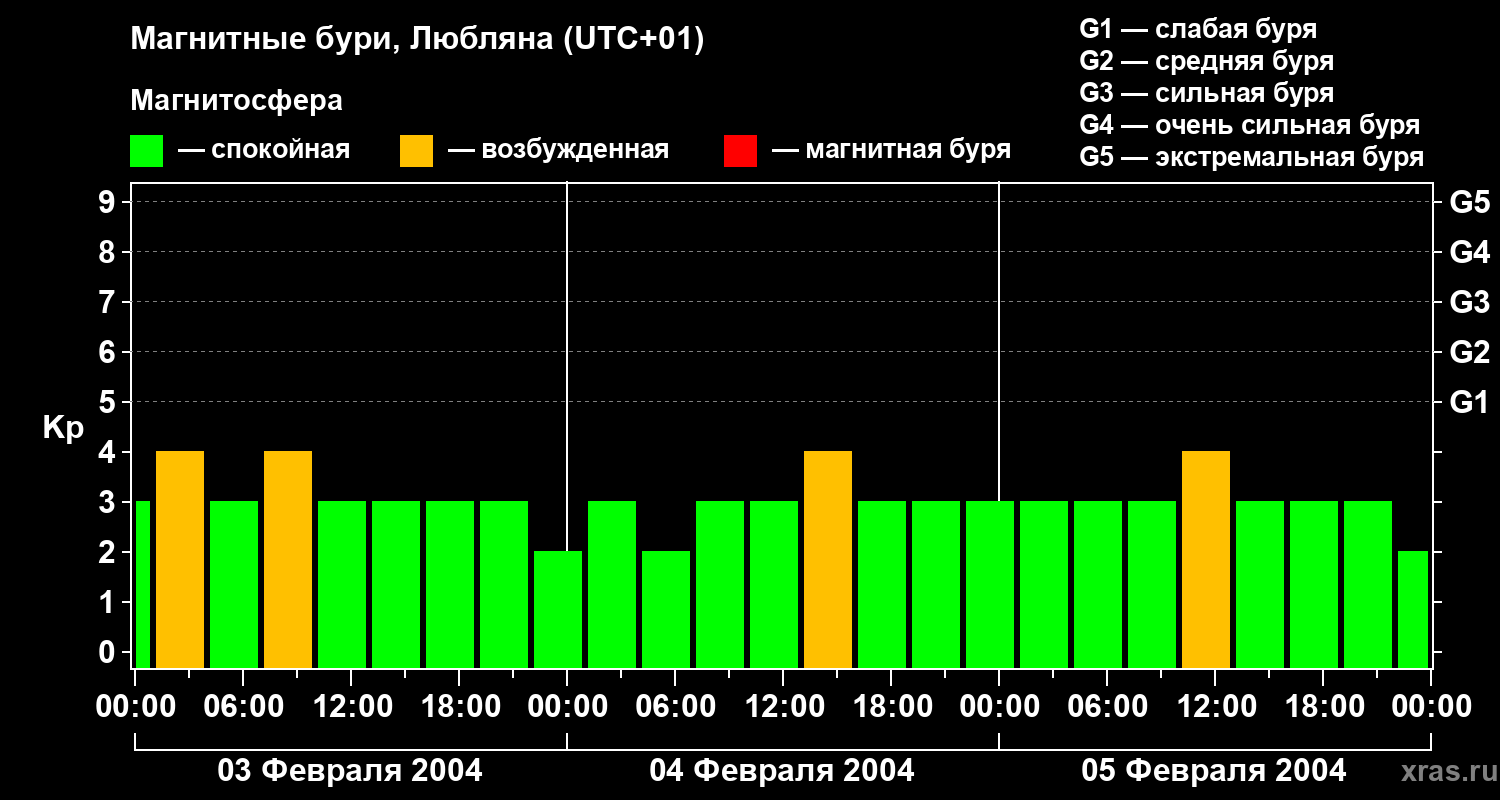 Магнитные бури в Любляне — 5 февраля 2004 года