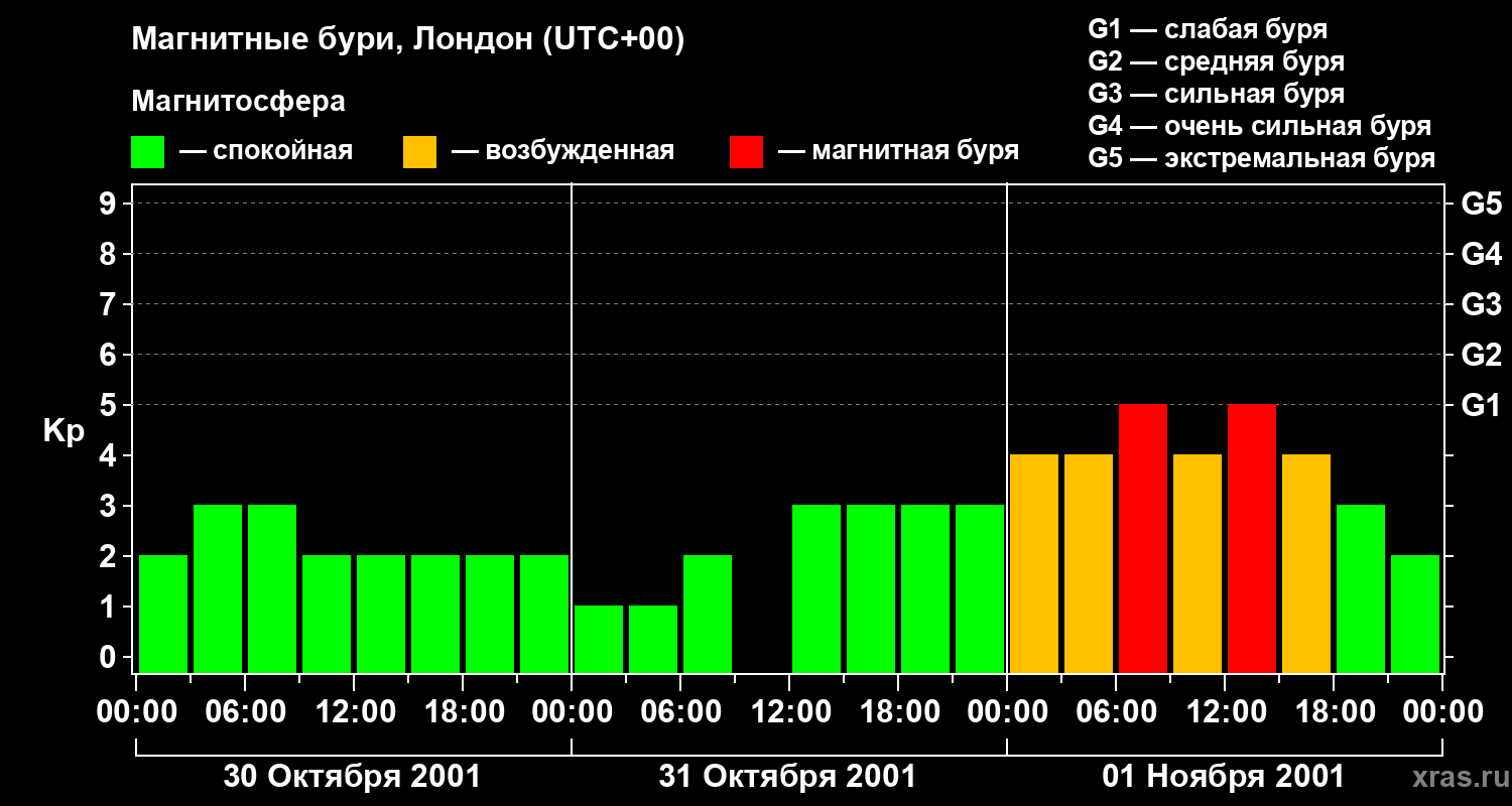 Магнитные бури в Лондоне — 1 ноября 2001 года